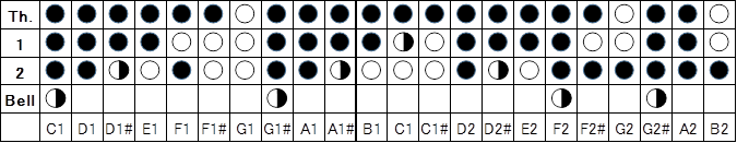 This is the current general fingering. As with the recorder, you can hold it in your mouth. Then, use your left thumb (or right hand) thumb, index finger, and middle finger to close the three tone holes above and below. At this time, the little finger and ring finger of the left hand support the whistle by sandwiching the end of the whistle. The tabor pipe as an instrument plays in the second and third octaves without using the first octave.